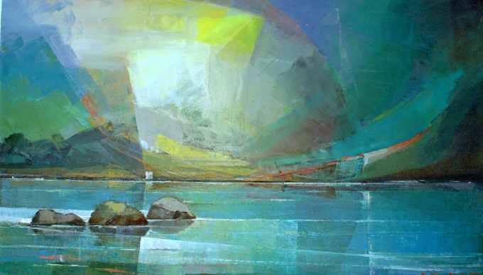 Βασίλης Σίμος, 1990, Βράχια , λάδι σε μουσαμά, 70×120