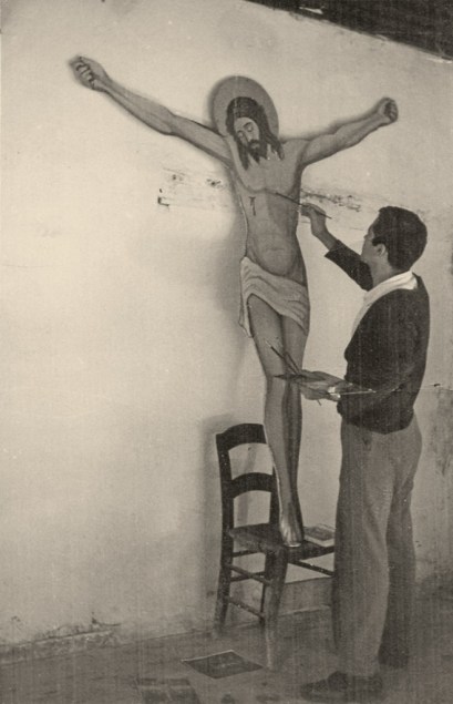 1953 Ο Βασίλης Σίμος ζωγραφίζει τον Εσταυρωμένο στην Ι.Μ Αγάθωνος